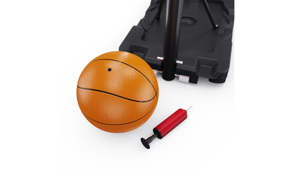 Размер щита составляет 72 х 49 см, толщина щита 1,8 мм, а размер кольца — 38 см. В комплекте баскетбольный мяч и насос.