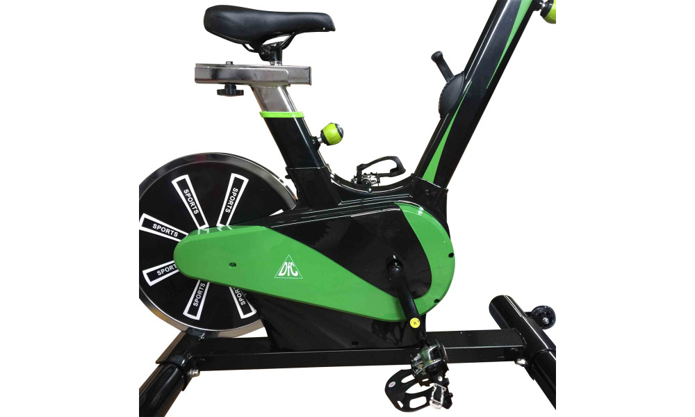Вертикальный механический спин-байк с ременной системой нагружения. Изменение нагрузки в 8 положениях происходит с помощью удобной рукоятки на раме тренажера.